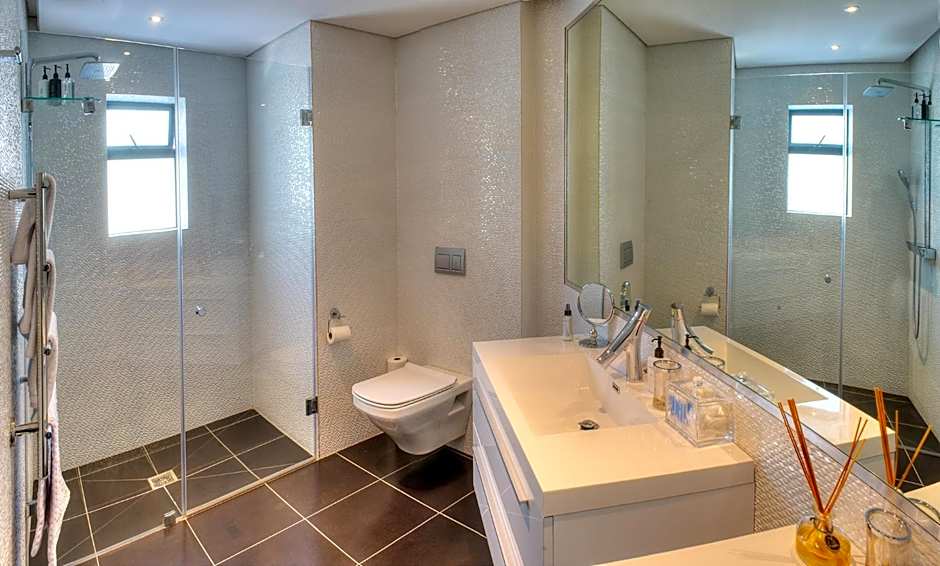 This more spacious and stylishly decorated sea facing penthouse suite features uninterrupted sea views from the rooftop terrace over Walker Bay and the Atlantic Ocean. It offers panoramic windows, elegant furniture and arts and is equipped with a state-of-the-art home theater system, as well as a spa bath.